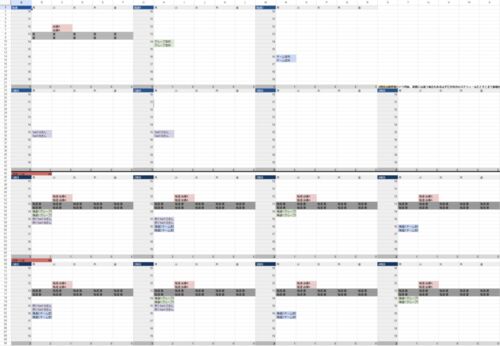 会議などで1日が埋まってくると この時間に予定入れて隔週、毎月の予定とかぶらないかな? どの日程に定例をいれるのがよいかな? みたいな(よくわからない)心配が出てくる さすがに頭の中だけで考えながら予定組むのが無理と感じたのでスプレッドシートに…