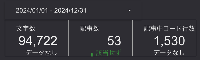例年と比べると2024はコード載せた量も多くないしあまり刺さる記事を書けなかったのかもなぁと感じている
